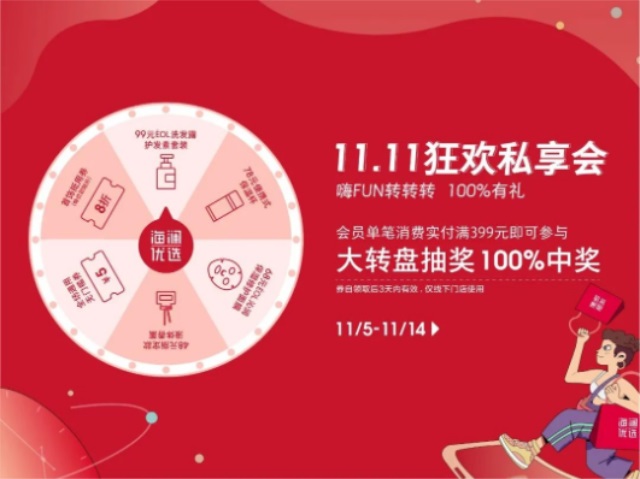 会员单笔实付满399元抽奖(100%中奖)